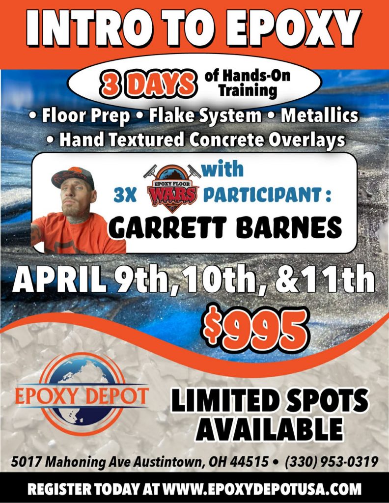 *Trainings are held at Epoxy Depot Academy in Lebanon PA